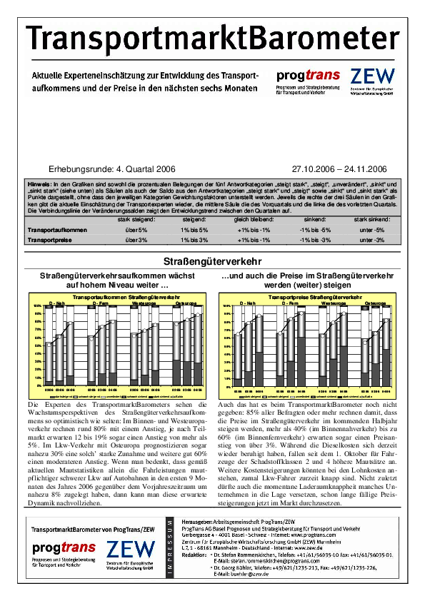 ZEW/Prognos-Transportmarktbarometer // 2006Kapazitätsengpässe und steigende Kosten lassen Transportpreise zum Teil erheblich steigen