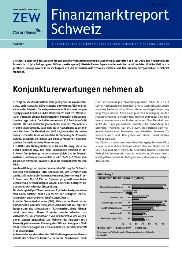 Finanzmarktreport Schweiz // 2007- Konjunkturerwartungen nehmen ab