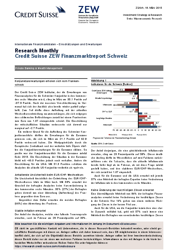 Finanzmarktreport Schweiz // 2015- Konjunkturerwartungen erholen sich vom Frankenschock