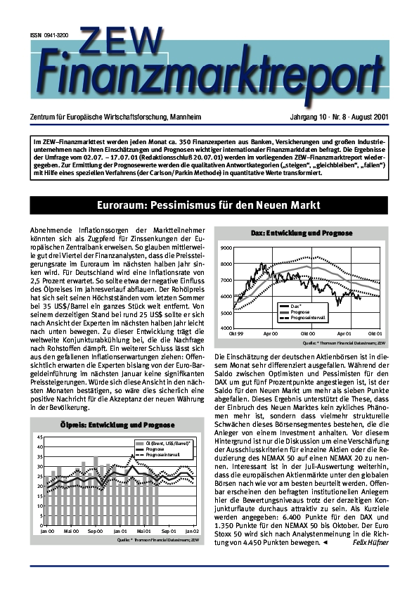 ZEW-Finanzmarktreport // 2001- Euroraum: Pessimismus für den Neuen Markt