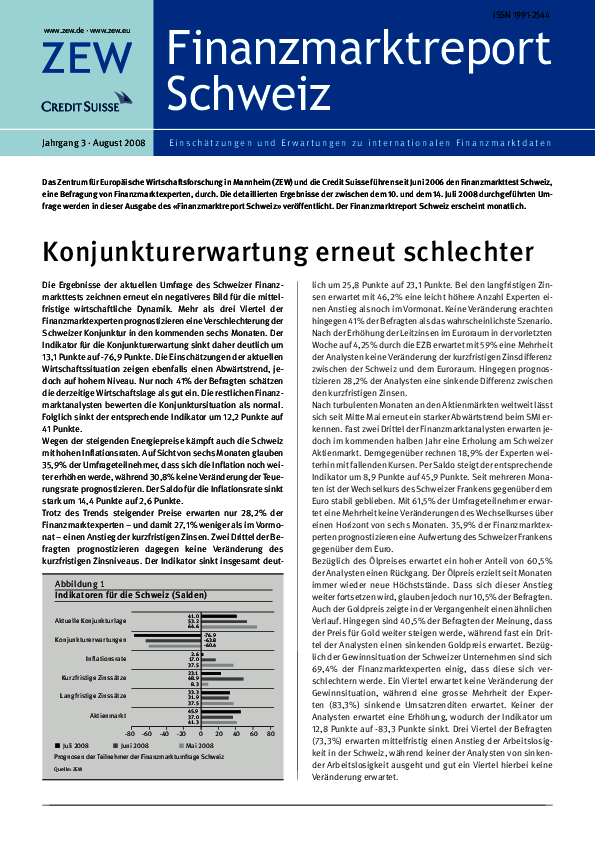 Finanzmarktreport Schweiz // 2008- Konjunkturerwartung erneut schlechter