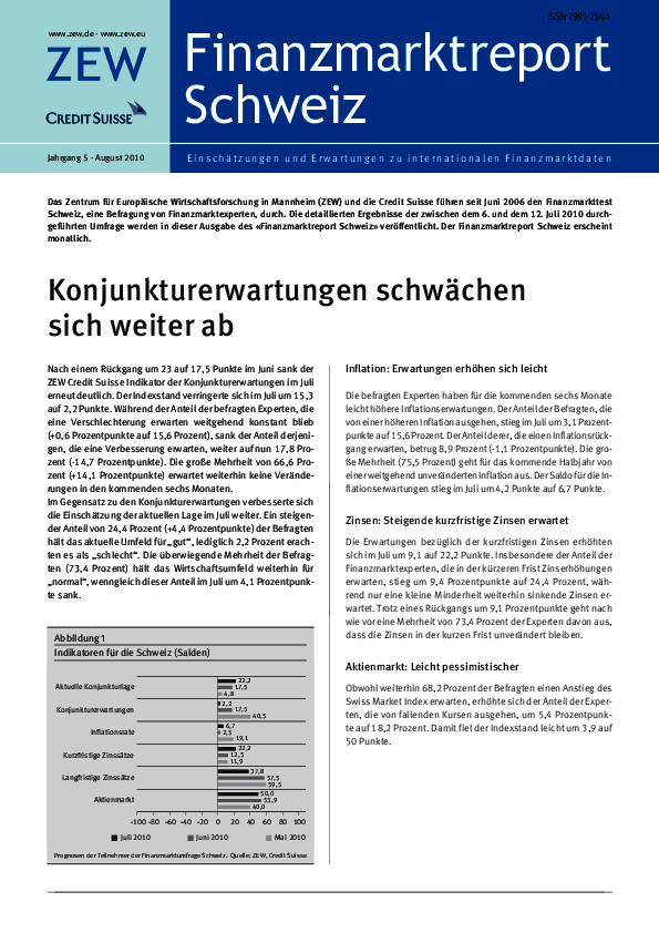 Finanzmarktreport Schweiz // 2010- Konjunkturerwartungen schwächen sich weiter ab