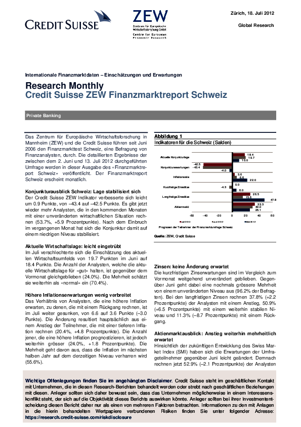 Finanzmarktreport Schweiz // 2012- Konjunkturausblick Schweiz: Lage stabilisiert sich