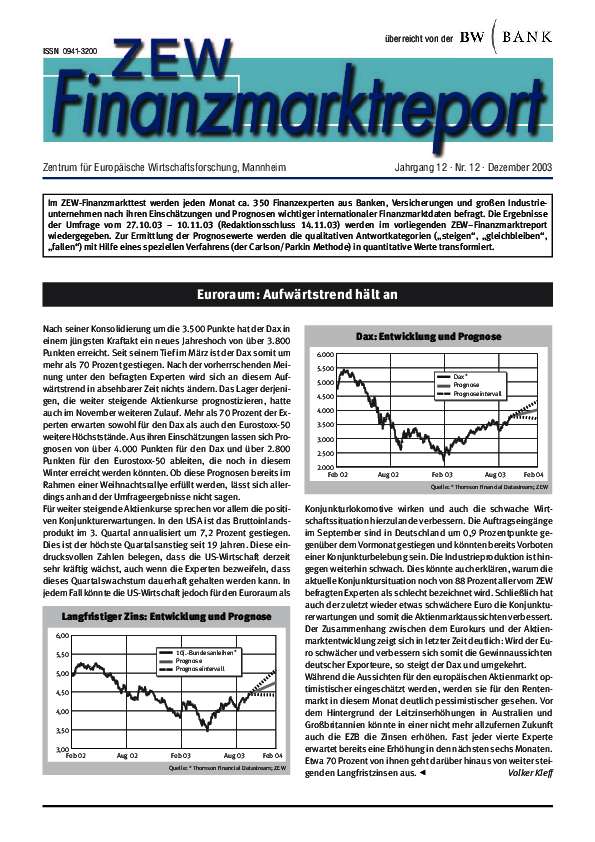 ZEW-Finanzmarktreport // 2003- Euroraum: Aufwärtstrend hält an