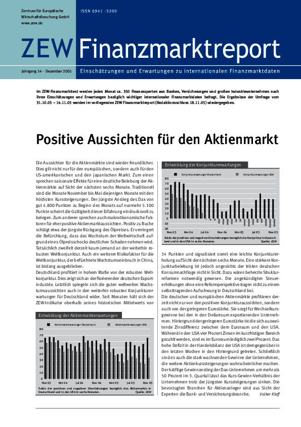 ZEW-Finanzmarktreport // 2005- Positive Aussichten für den Aktienmarkt