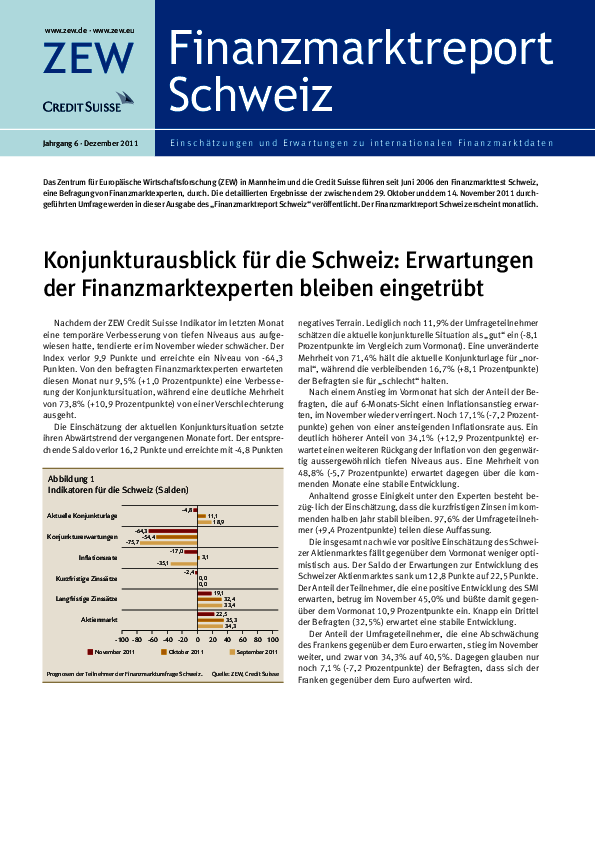 Finanzmarktreport Schweiz // 2011- Konjunkturausblick für die Schweiz: Erwartungen der Finanzmarktexperten bleiben eingetrübt