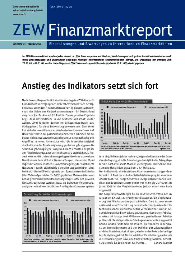 ZEW-Finanzmarktreport // 2006- Anstieg des Indikators setzt sich fort