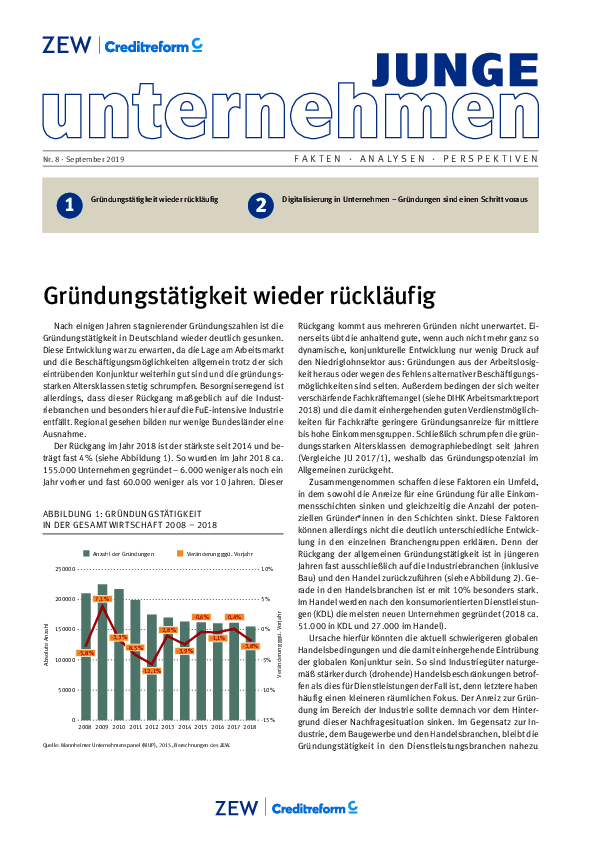 • Gründungstätigkeit wieder rückläufig