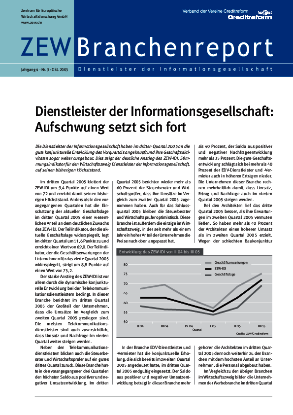 ZEW-Branchenreport Informationswirtschaft // 2005Dienstleister der Informationsgesellschaft: Aufschwung setzt sich fort