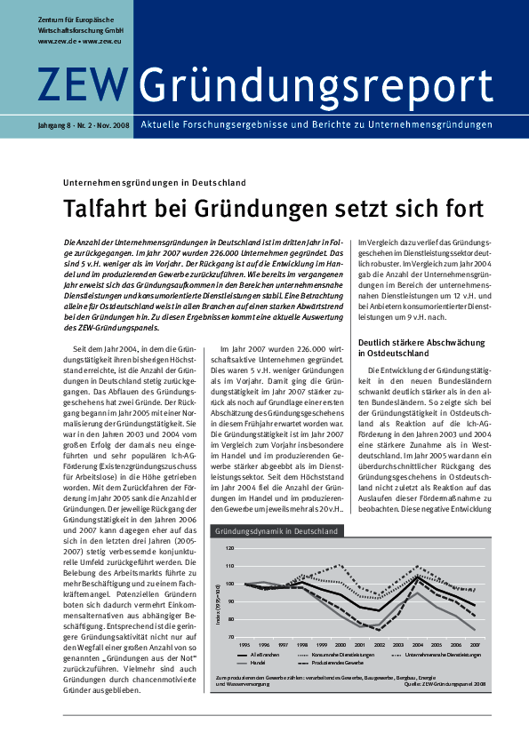 • Das neue KfW/ZEW-Gründungspanel - Ergebnisse der ersten Befragungswelle