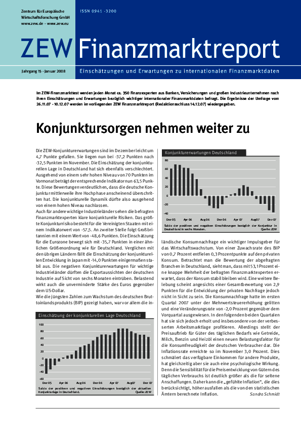 ZEW-Finanzmarktreport // 2008- Konjunktursorgen nehmen weiter zu