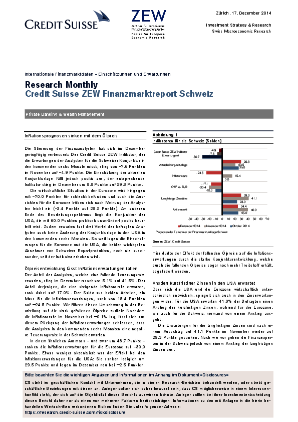 Finanzmarktreport Schweiz // 2015- Inflationsprognosen sinken mit dem Ölpreis