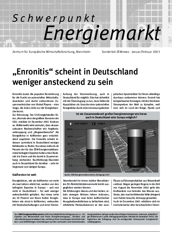 ZEW-Energiemarktbarometer // 2003"Enronitis" scheint in Deutschland weniger ansteckend zu sein