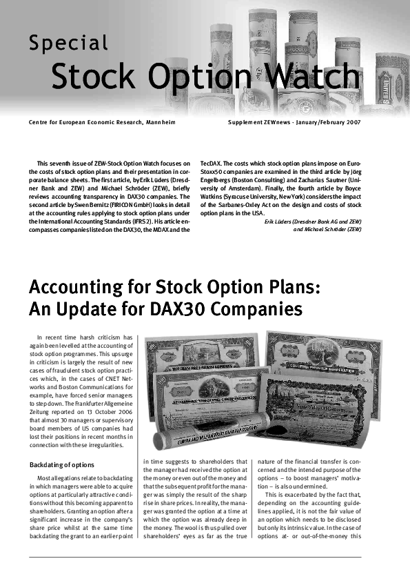 • Accounting for Stock Option Plans: An Update for DAX30 Companies