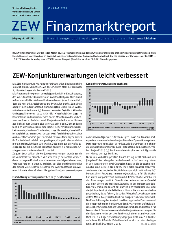 ZEW-Finanzmarktreport // 2013- ZEW-Konjunkturerwartungen leicht verbessert
