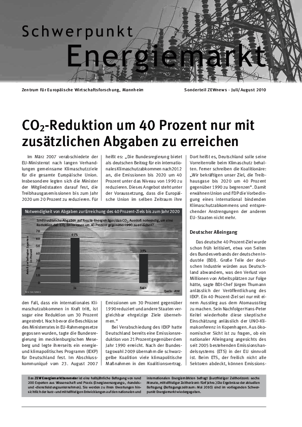 CO2-Reduktion um 40 Prozent nur mit zusätzlichen Abgaben zu erreichen