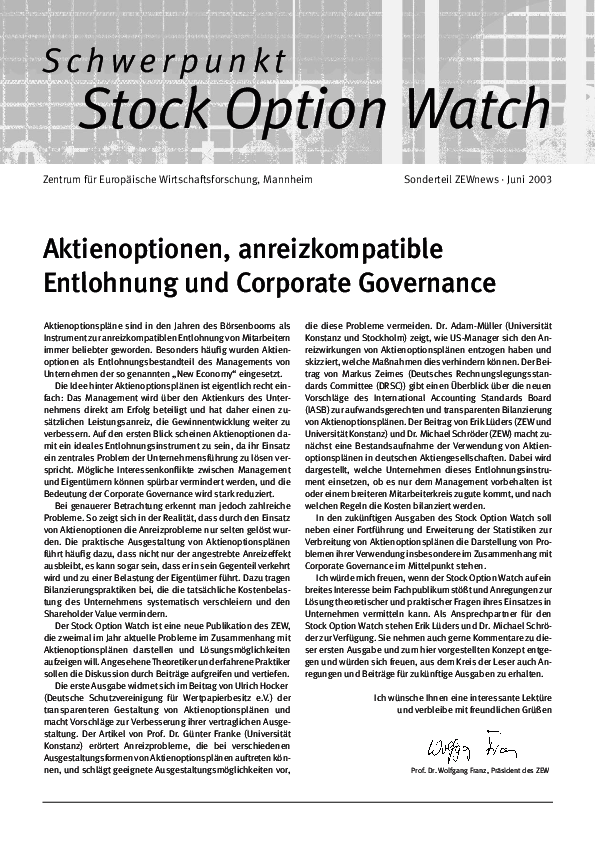 Stock Option Watch // 2003- Aktienoptionen, anreizkompatible Entlohnung und Corporate Governance