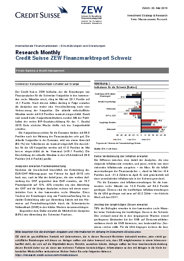 Finanzmarktreport Schweiz // 2015- Schweizer Konjunkturampel schaltet auf Orange