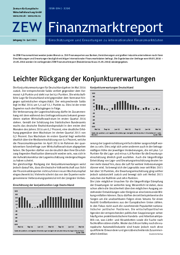 ZEW-Finanzmarktreport // 2016- Leichter Rückgang der Konjunkturerwartungen