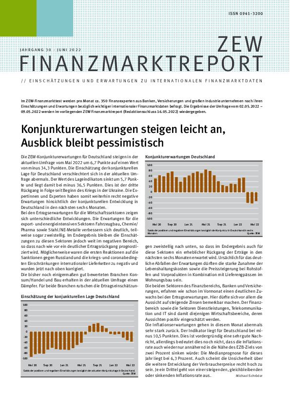 ZEW-Finanzmarktreport // 2022- Konjunkturerwartungen steigen leicht an, Ausblick bleibt pessimistisch
