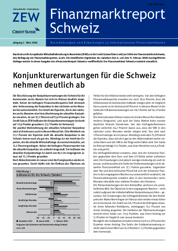 Finanzmarktreport Schweiz // 2008- Konjunkturerwartungen für die Schweiz nehmen deutlich ab