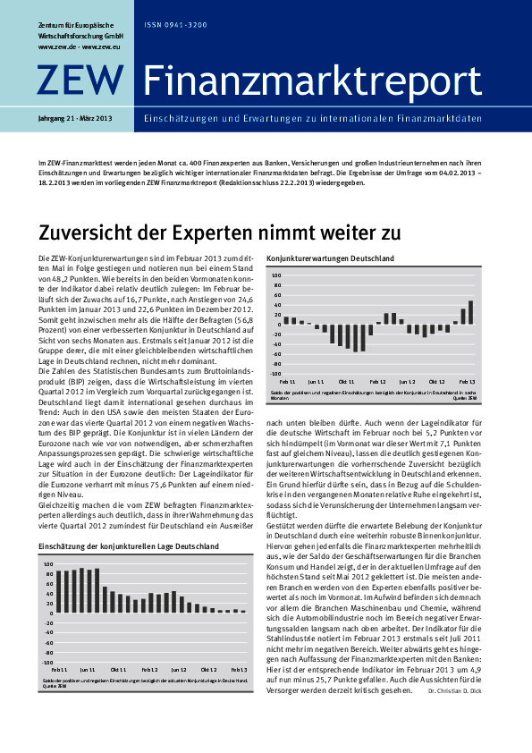 ZEW-Finanzmarktreport // 2013- Zuversicht der Experten nimmt weiter zu