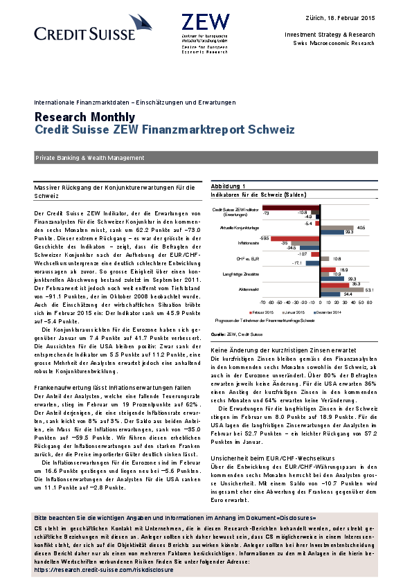 Finanzmarktreport Schweiz // 2015- Massiver Rückgang der Konjunkturerwartungen für die Schweiz