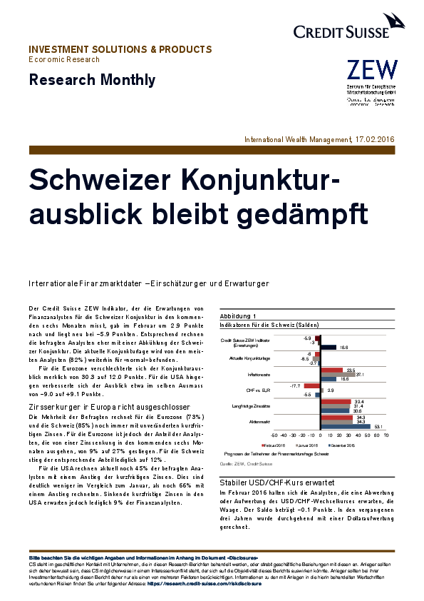 Finanzmarktreport Schweiz // 2016- Schweizer Konjunkturausblick bleibt gedämpft