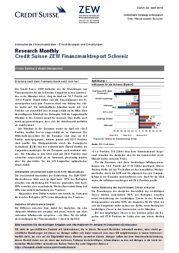 Finanzmarktreport Schweiz // 2015- Erholung nach dem Frankenschock setzt sich fort