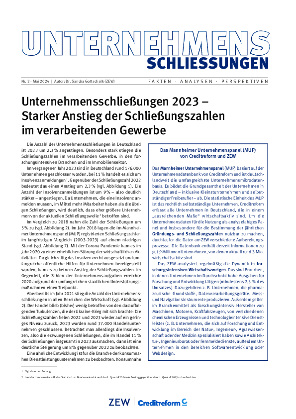 • Unternehmensschließungen 2023 – Starker Anstieg der Schließungszahlen im verarbeitenden Gewerb