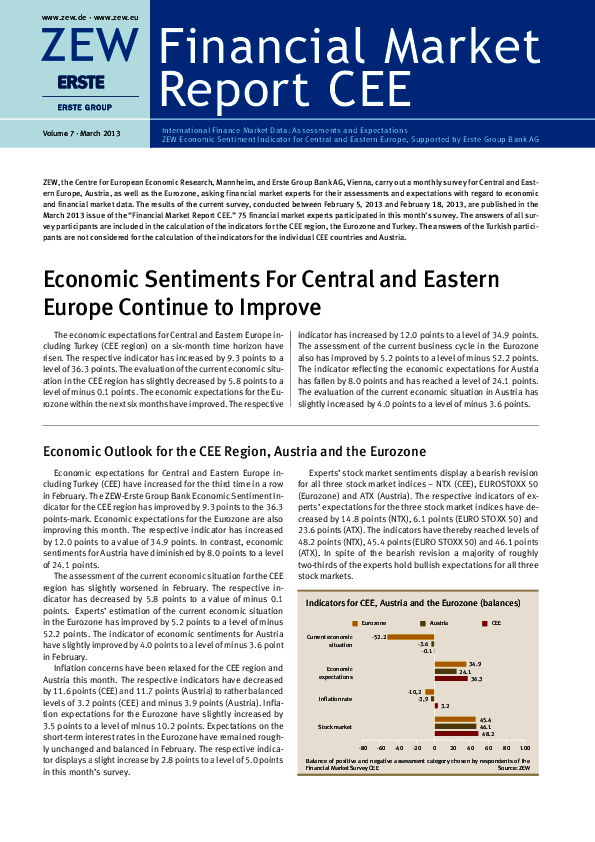 Finanzmarktreport CEE // 2013- Economic Sentiments For Central and Eastern Europe Continue to Improve