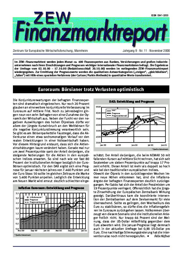 ZEW-Finanzmarktreport // 2000- Euroraum: Börsianer trotz Verlusten optimistisch