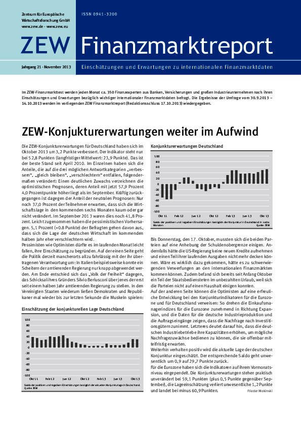 ZEW-Finanzmarktreport // 2013- ZEW-Konjukturerwartungen weiter im Aufwind