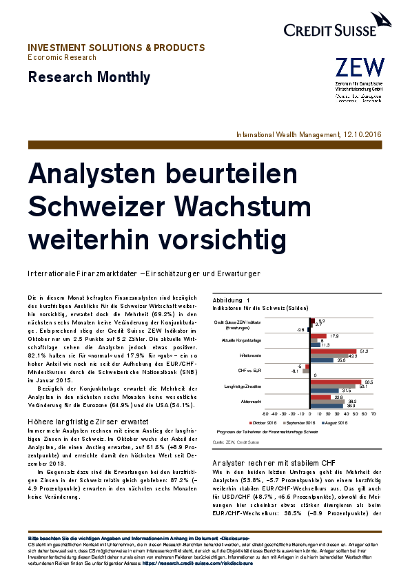 Finanzmarktreport Schweiz // 2016- Internationale Finanzmarktdaten – Einschätzungen und Erwartungen