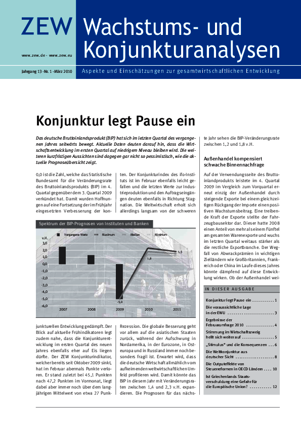 ZEW-Wachstums- und Konjunkturanalysen // 2010- Konjunktur legt Pause ein
