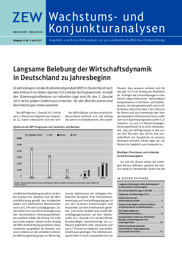 ZEW-Wachstums- und Konjunkturanalysen // 2013- Langsame Belebung der Wirtschaftsdynamik in Deutschland zu Jahresbeginn
