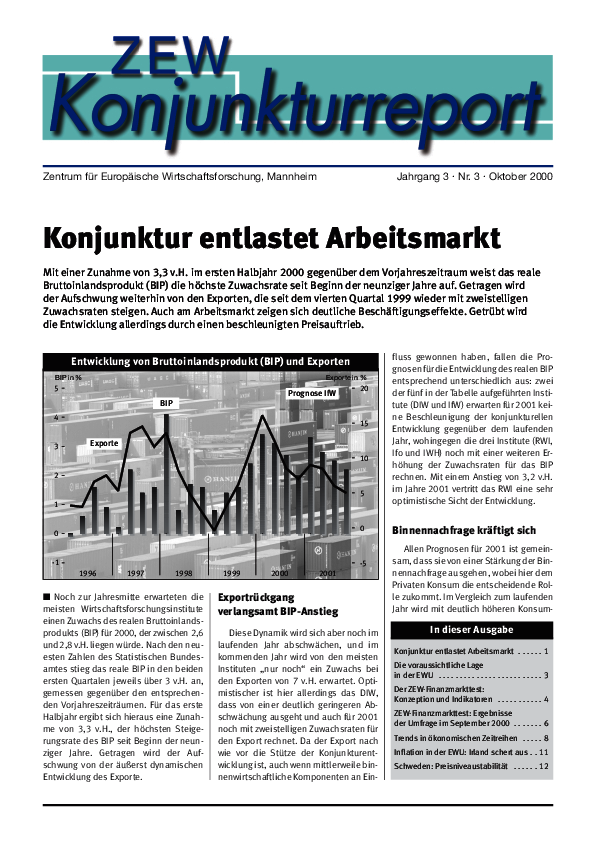 ZEW-Wachstums- und Konjunkturanalysen // 2000- Konjunktur entlastet Arbeitsmarkt