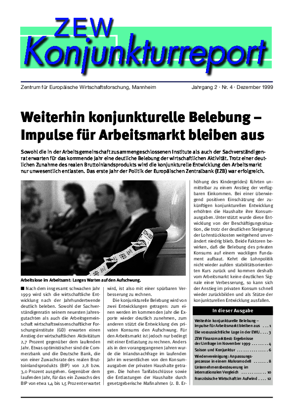 ZEW-Wachstums- und Konjunkturanalysen // 1999- Weiterhin konjunkturelle Belebung –Impulse für Arbeitsmarkt bleiben aus