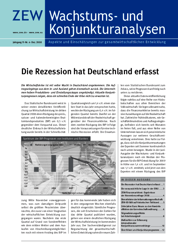ZEW-Wachstums- und Konjunkturanalysen // 2008- Die Rezession hat Deutschland erfasst