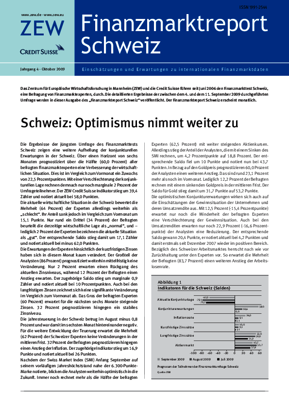 Finanzmarktreport Schweiz // 2009- Schweiz: Optimismus nimmt weiter zu