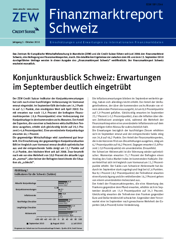 Finanzmarktreport Schweiz // 2010- Konjunkturausblick Schweiz: Erwartungen im September deutlich eingetrübt