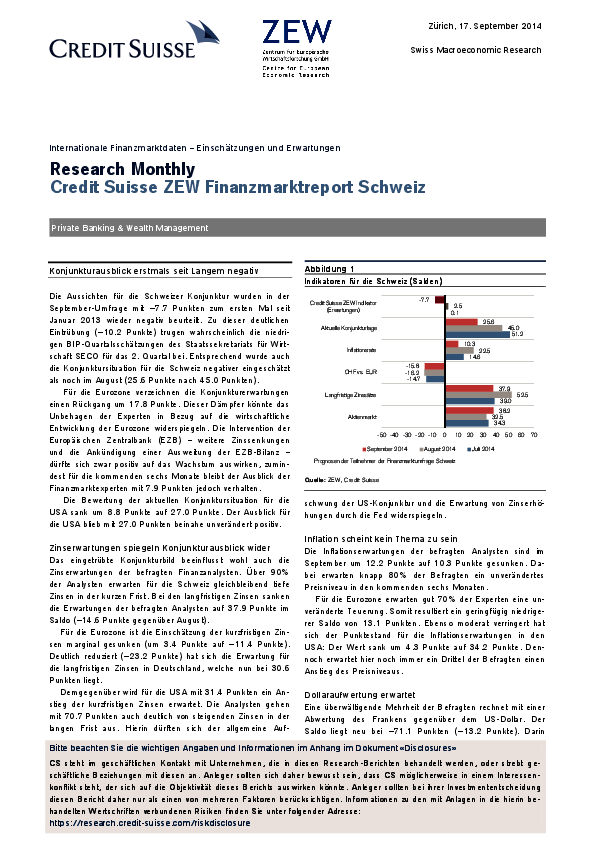 Finanzmarktreport Schweiz // 2014- Konjunkturausblick erstmals seit Langem negativ
