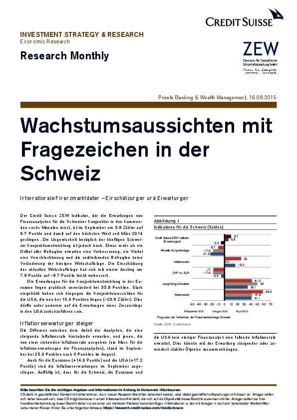 Finanzmarktreport Schweiz // 2015- Wachstumsaussichten mit Fragezeichen in der Schweiz