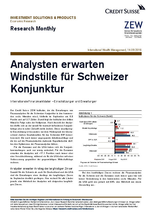 Finanzmarktreport Schweiz // 2016- Internationale Finanzmarktdaten – Einschätzungen und Erwartungen
