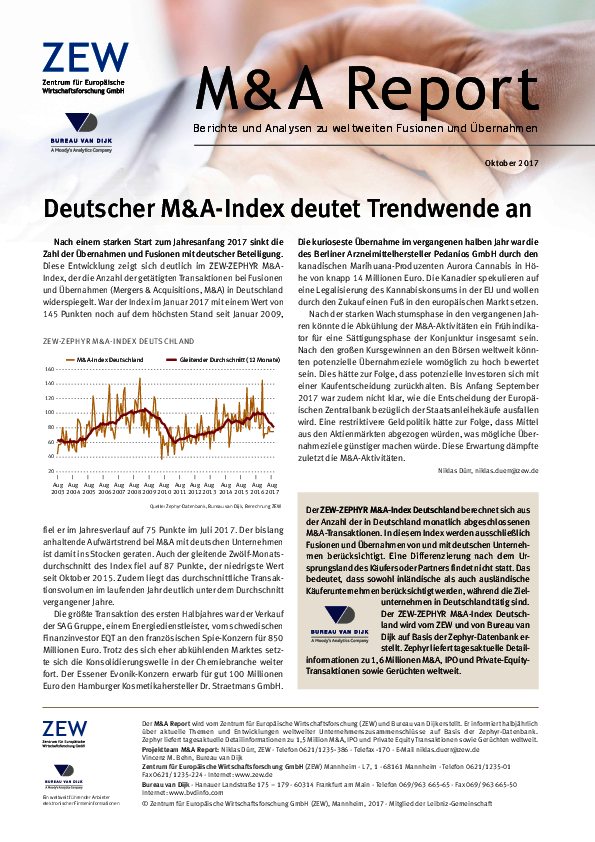 M&A-Report // 2017- Deutscher M&A-Index deutet Trendwende an