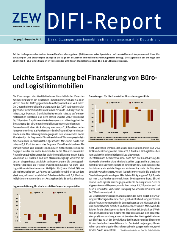 Deutscher Immobilien-Finanzierungsindex(DIFI)-Report // 2012- Leichte Entspannung bei Finanzierung von Büro- und Logistikimmobilien