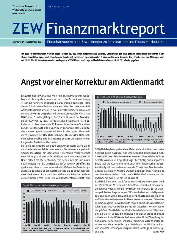 ZEW-Finanzmarktreport // 2005- Angst vor einer Korrektur am Aktienmarkt