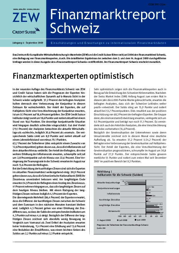 Finanzmarktreport Schweiz // 2009- Finanzmarktexperten optimistisch