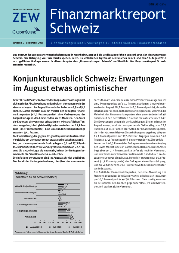 • Konjunkturausblick Schweiz: Erwartungen im August etwas optimistischer