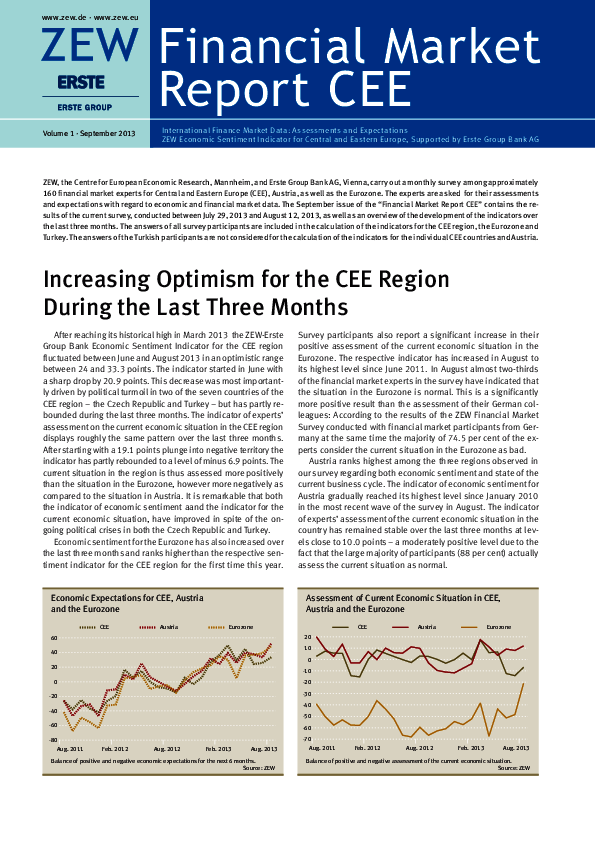 Finanzmarktreport CEE // 2013- Increasing Optimism for the CEE Region During the Last Three Months